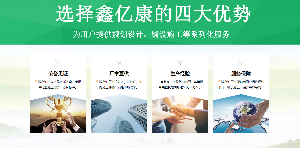鑫億康(山東)體育產業發展有限公司是業內一家塑膠跑道材料的生產企業。公司經營范圍:塑膠跑道,全塑型塑膠跑道,混合型塑膠跑道,透氣型塑膠跑道,EPDM塑膠跑道廠家銷售及鋪設;體育用品及器材銷售、安裝?! 」緭碛袑I的生產及研發團隊和專業的銷售管理精英團隊,一直致力于產品的開發和業務的拓展,產品暢銷全國各個省市,遠銷東南亞地區、歐美等國家。卓越的品質,周到細致的服務,使我們取得為眾多生活小區、市政單位、物業公司、學校、工廠等單位提供優質產品的機會,產品色澤鮮艷,美觀大方,品種齊全,材質多樣化,并贏得了良好口碑,多次獲得好評和表彰。  企業性質:涉足建筑業,具有多項資質證書,是集研發、項目管理、設計、檢測、加固施工、咨詢服務于一體的綜合性科技型企業,通過為業主提供品質卓越、專業誠信的服務,來贏得信譽并滿足社會要求。  服務內容:長期致力于建筑領域中發展,從項目的規劃到操作運行,為業主提供從工程項目管理、工程結構設計、房屋質量檢測、幕墻檢測、司法鑒定、抗震鑒定、工程檢測、工程測繪、特種工程加固、綜合改造加固、工程監理等系統而專業化的服務,包括項目生命周期中的每一個步驟?! 」芾砥脚_:致力于管理的規范化和精細化,為業主提供性價比更高的服務。公司按照國際ISO9000質量標準和國家MA計量標準實事工程...